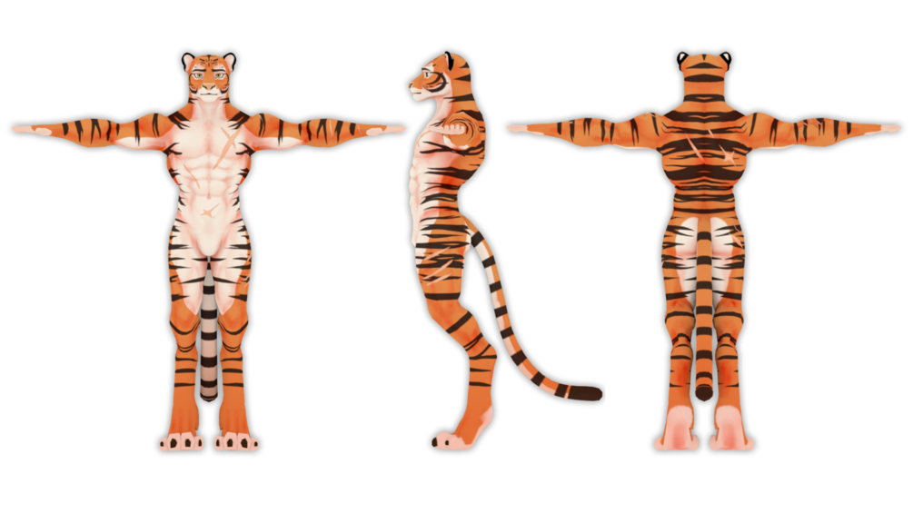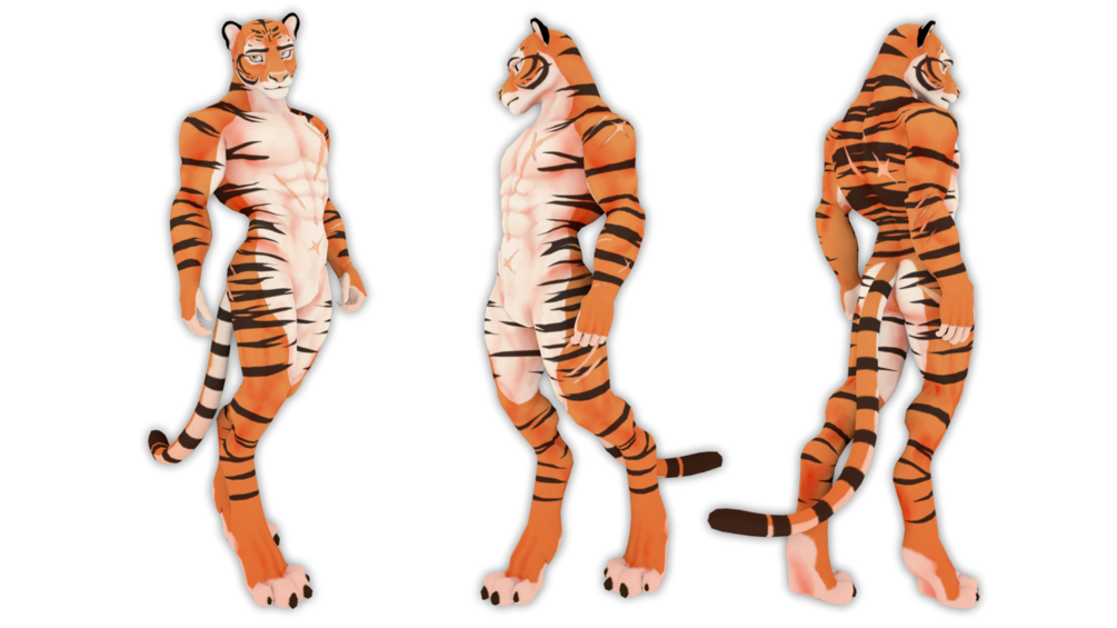 VRC-Ready Tiger avatar, set up for the VRC SDK3, fully set up with visemes, Three expressions and (Depending on your choice) Dynamic bones (Addon not included, For legal reasons)